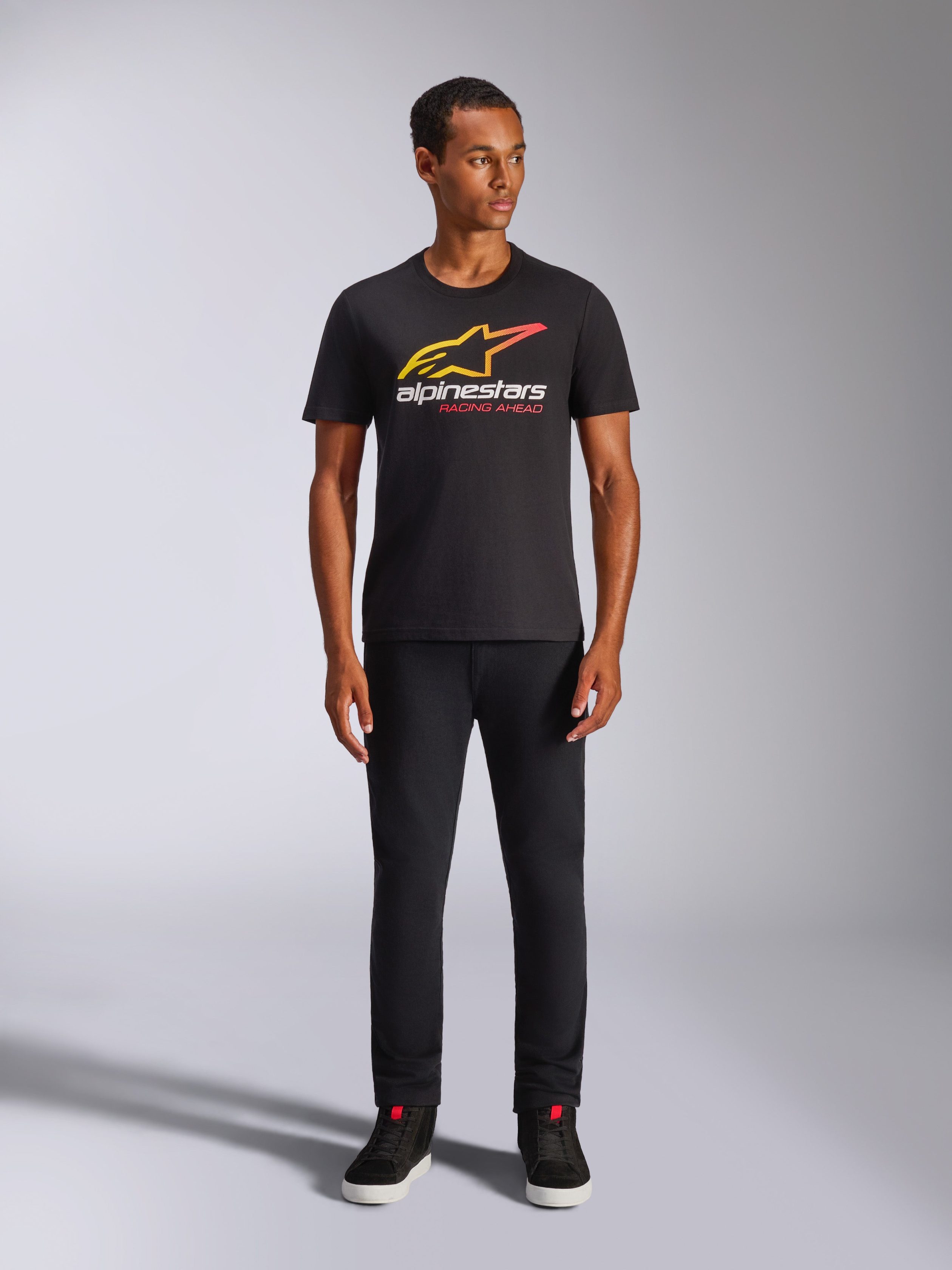 ? Printed CSF short sleeve tee? Front astars logo with multi tech graphic. Soft hand print? Internal neck print. external labeling? 60% Combed Ring-Spun Cotton. 40% Polyester