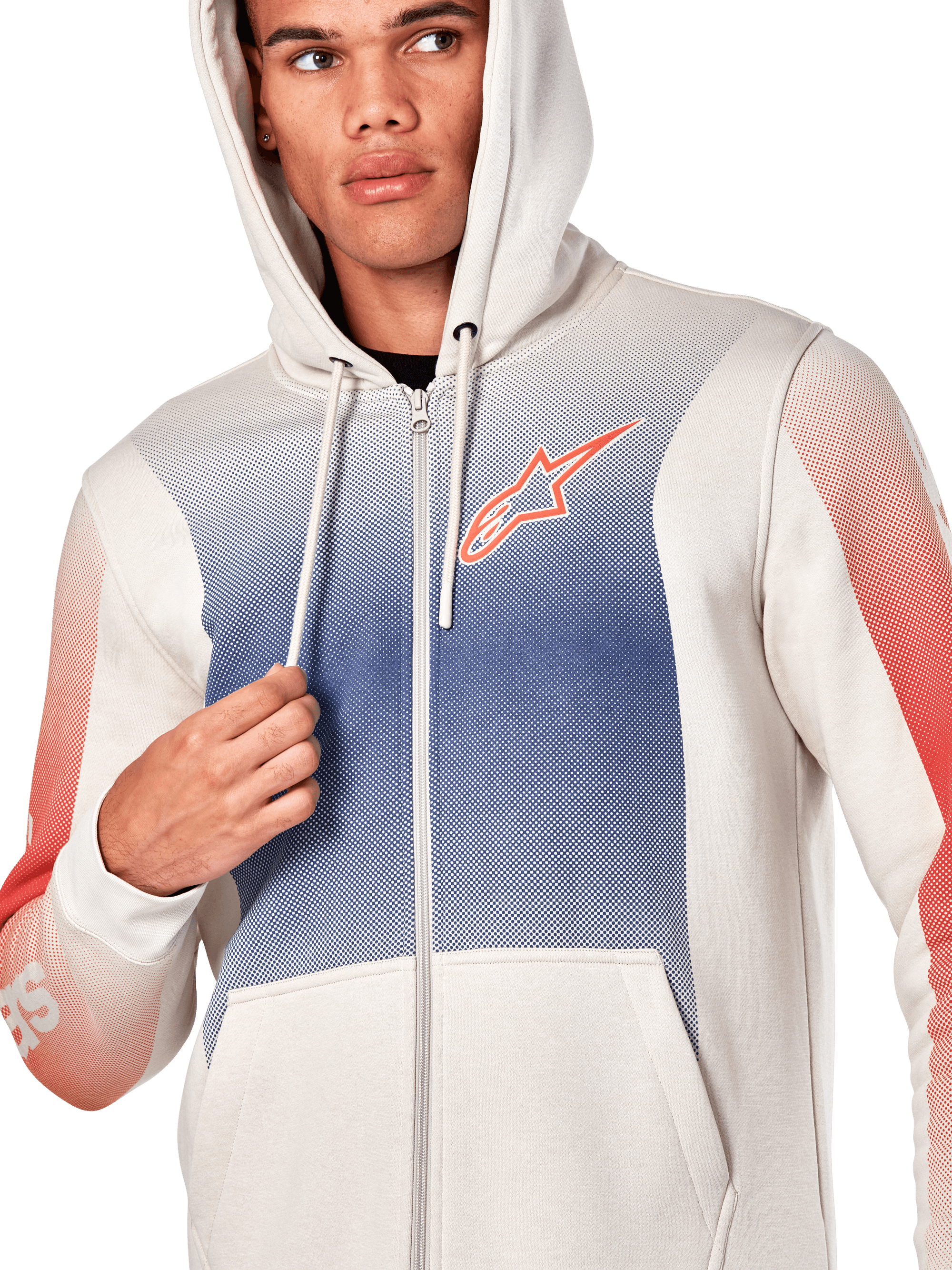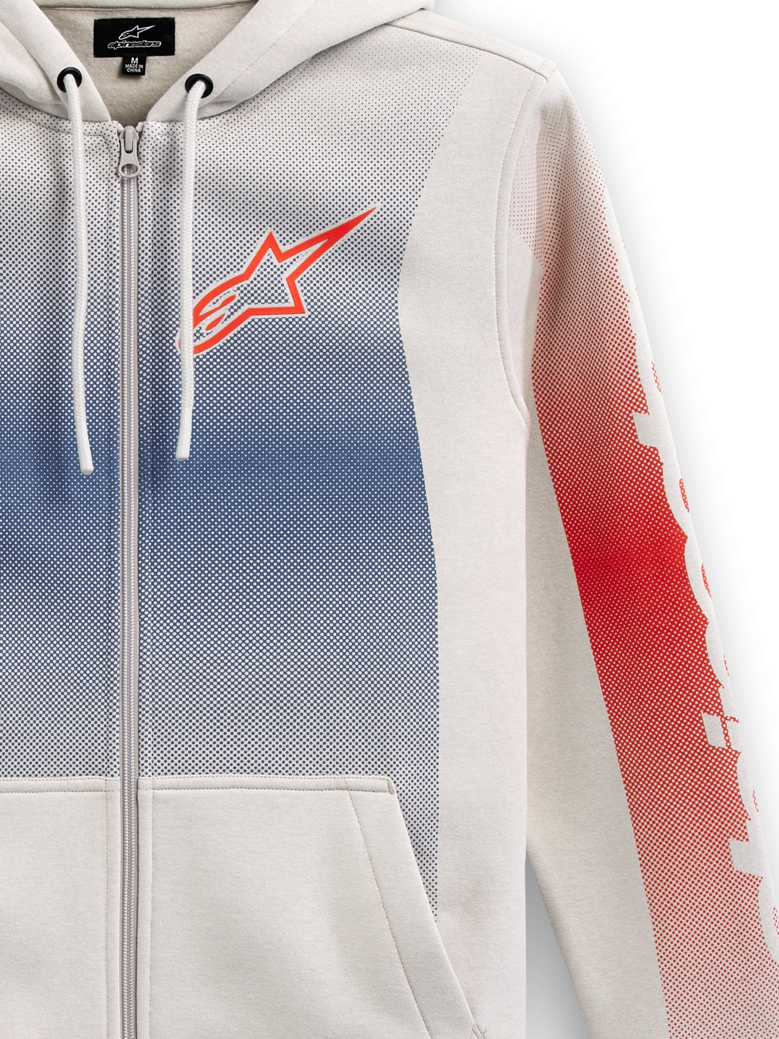 • ZIP FRONT FLEECE HOODIE• Zip front hoodie with kangaroo pocket• Engineered fade prints on body and sleeves. HD logo at chest• Self lined hood. dipped drawcord tips. rib cuffs and hem• Internal main label and external label branding.
