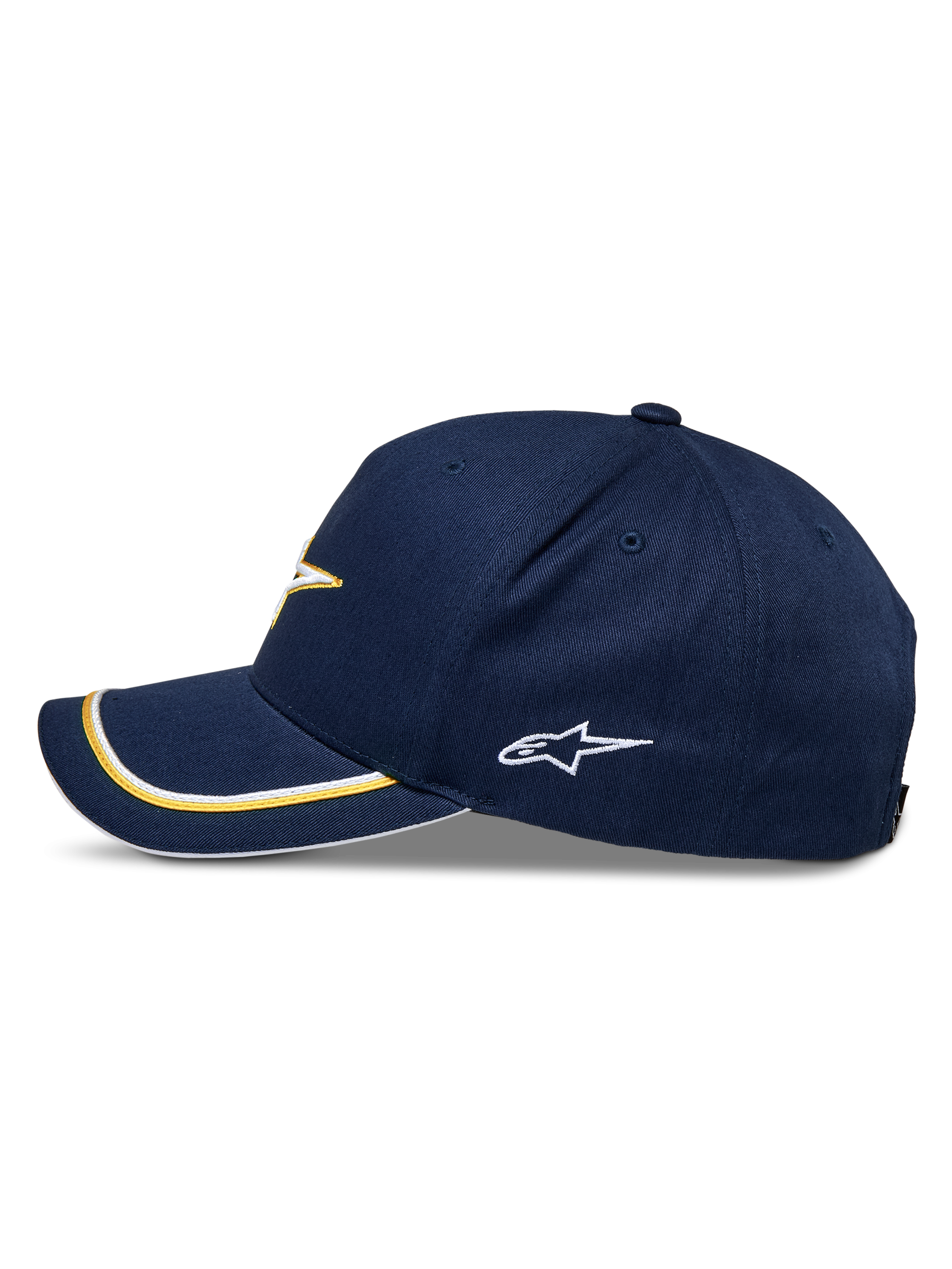 ? Curved bill with structured crown? Snap back? Twill main fabric? Front 3D embroidery Astars logo. with side logo flat? embroidery. and double sutache trim at bill? Internal and back labeling? 98% Cotton