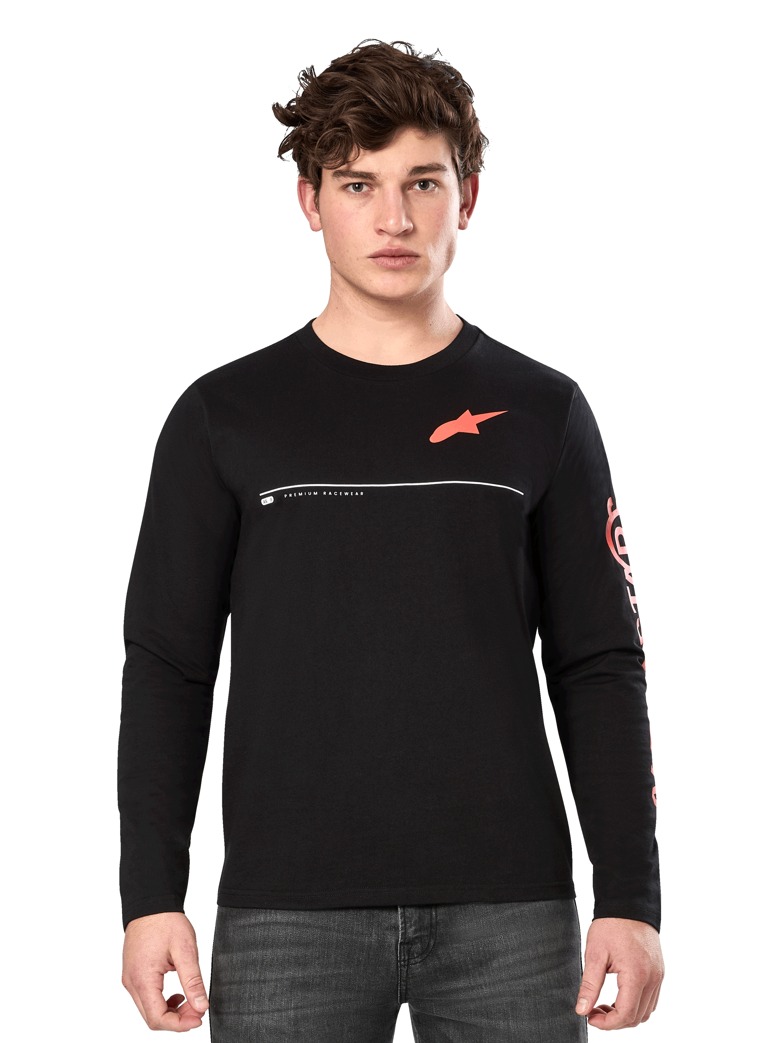 ? PRINTED CSF LONG SLEEVE TEE? Front Astars chest logo with Alpinestars sleeve logo. Soft hand print